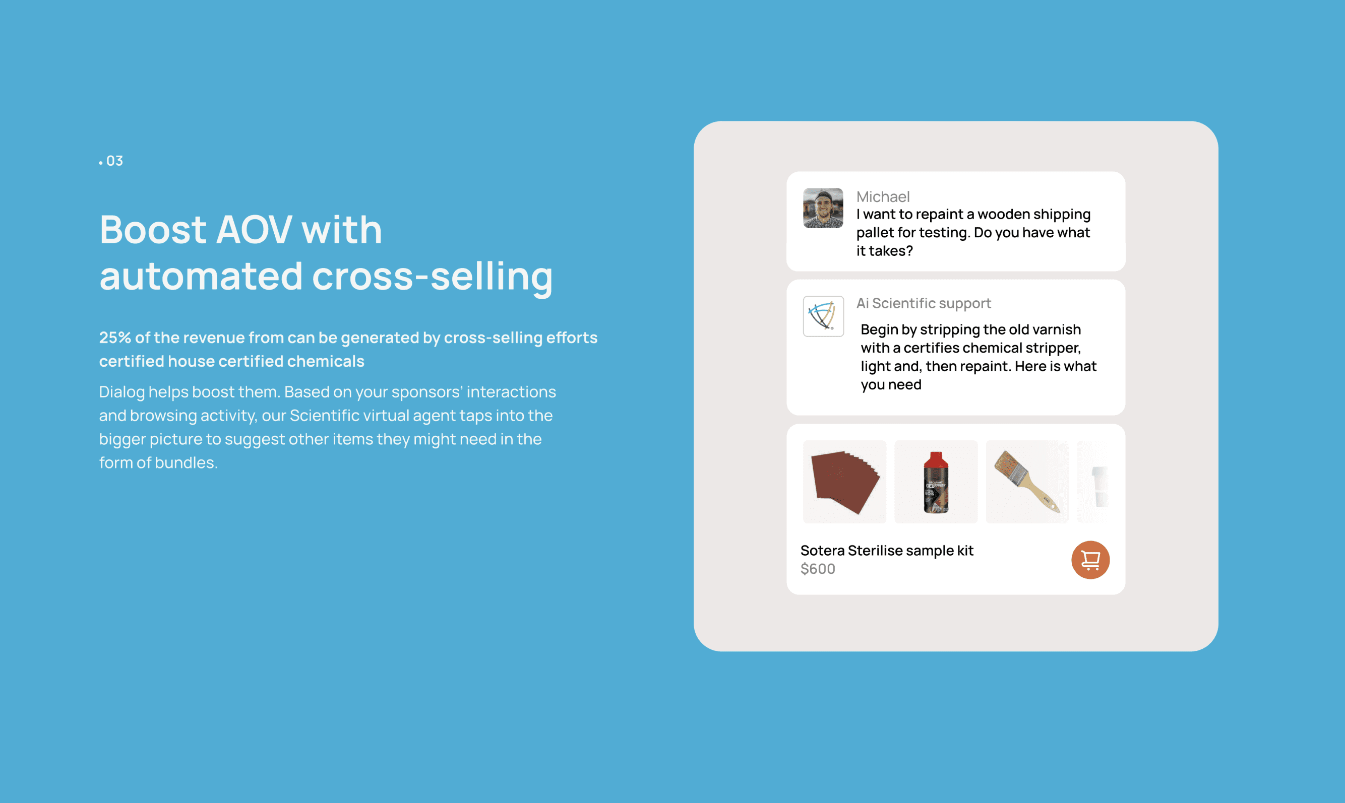 Boosted revenue through AI-driven cross-selling, recommending relevant certified chemicals and bundled services.
